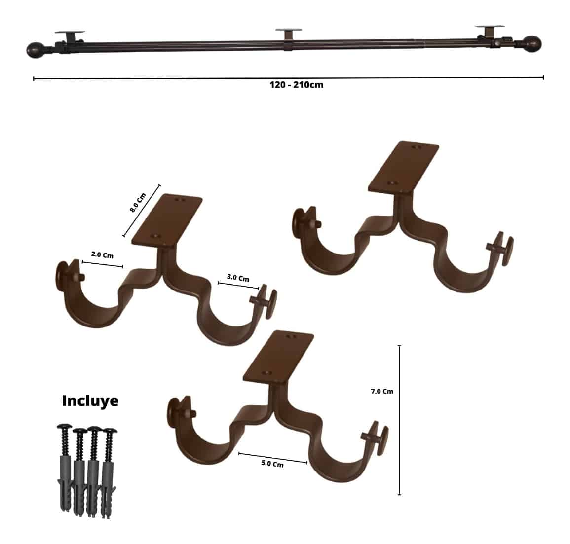 Set Barras para Cortina Doble 16/19 Mm Extensible 120-210 Cm A Techo Café Bola