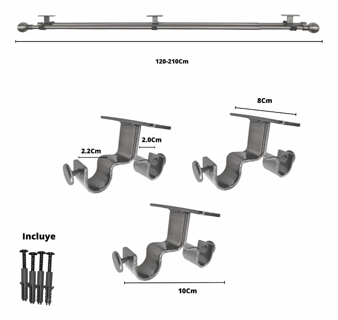Set Barras para Cortina Doble 16/19 Mm Extensible 120-210 Cm A Techo Satín Bola