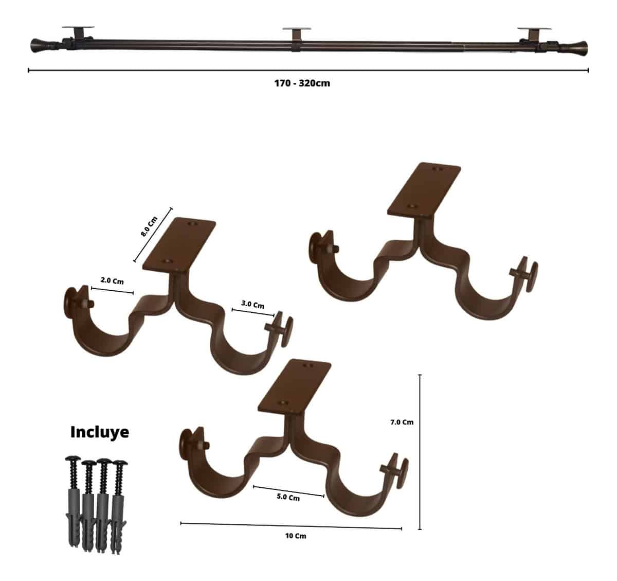 Set Barras para Cortina Doble 16/19 Mm Extensible 170-320 Cm A Techo Café Cónico