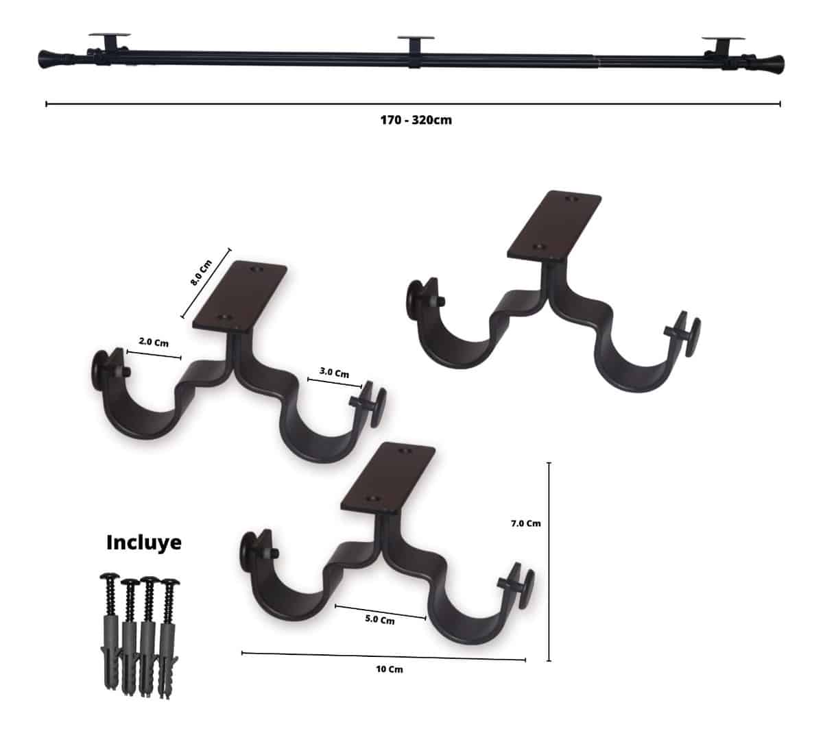* 2 barras extensibles de metal (diámetro 16/19 mm): resistentes, ajustables y listas para adaptarse a tu espacio.