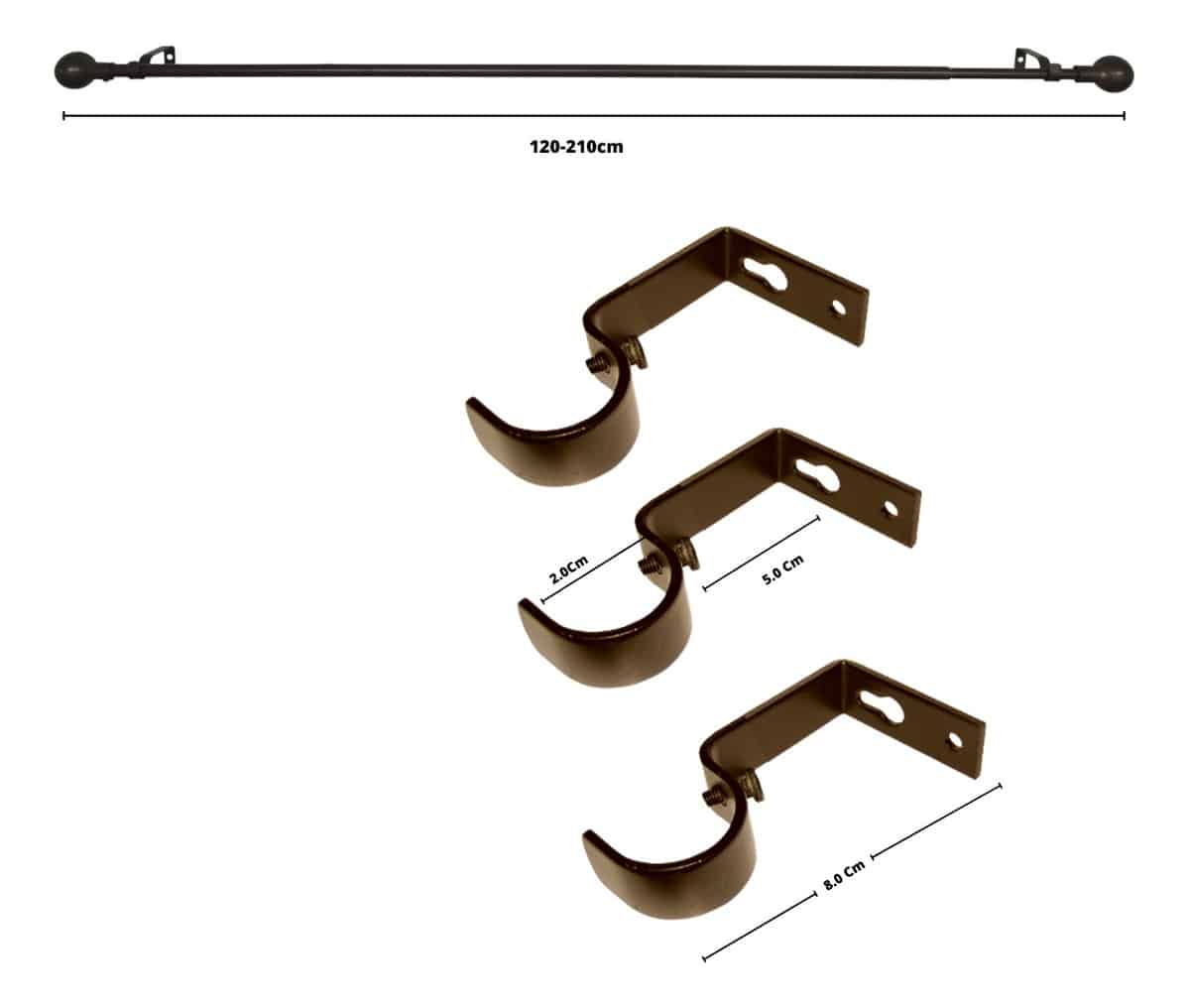 Set Barra para Cortina Simple 16/19 Mm Extensible 120-210 Cm A Muro Café Bola