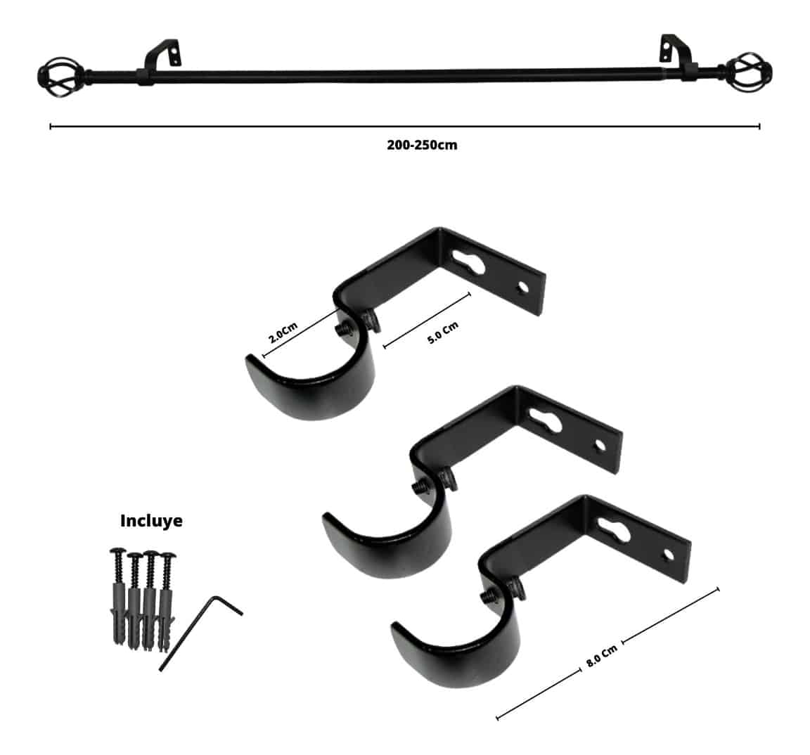Set Barra para Cortina Simple 13/16 Mm Extensible 200-250 Cm Negro Orb Nido