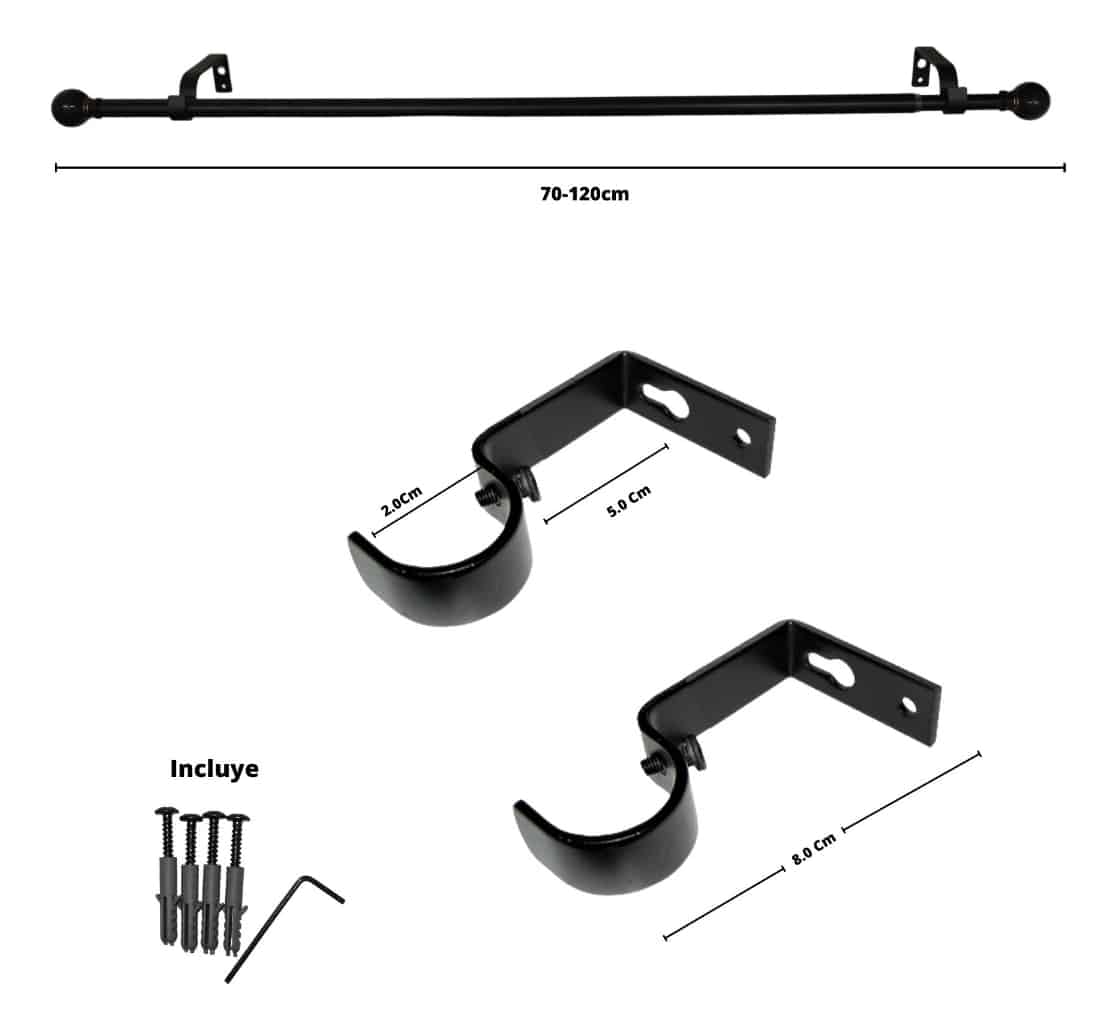 Set Barra para Cortina Simple 13/16 Mm Extensible 70-120 Cm Negro Orb Bola
